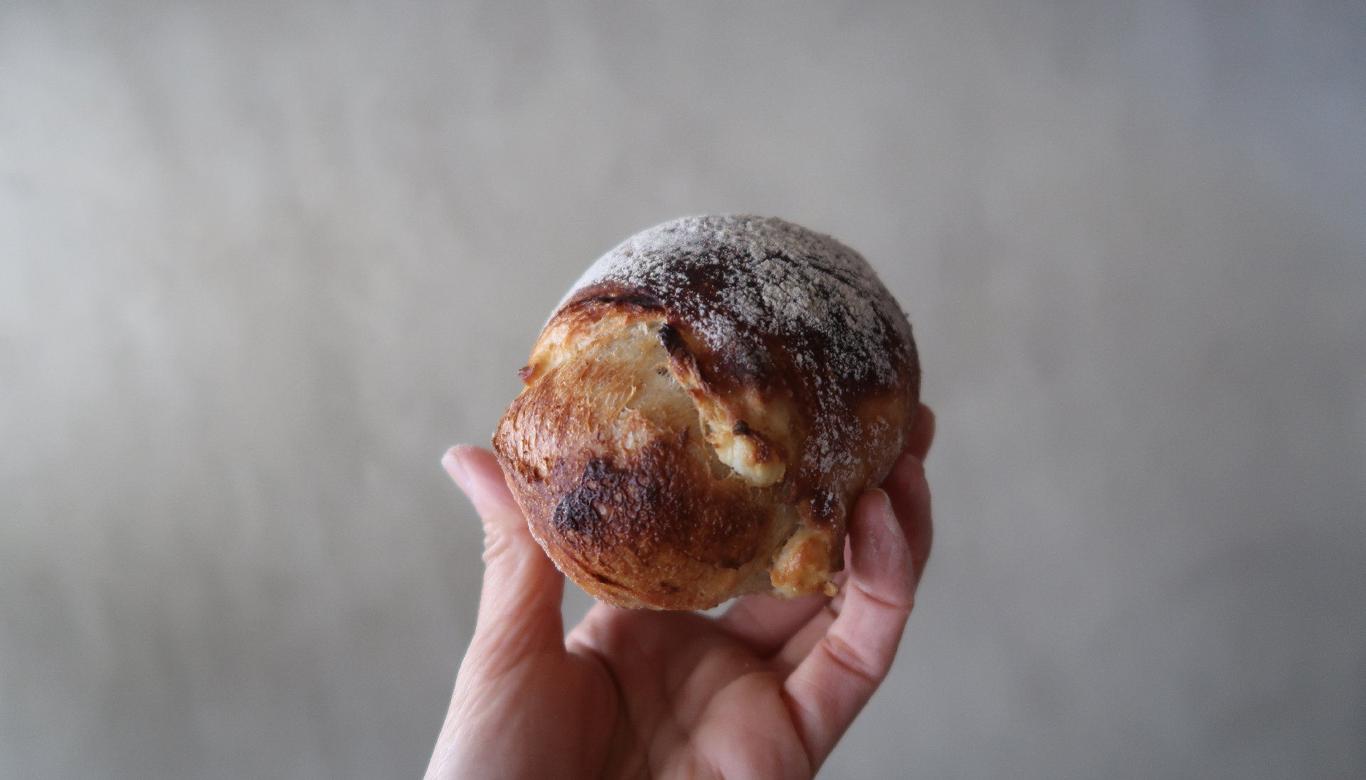 国産小麦、天然塩、酵母、蜂蜜のみで作るシンプルなパン(リュスティック) 水分量が他のパンに比べて高いため、きりっぱなしで成形していきます。 もっちりとした生地の中に蜂蜜とクリームチーズを織り込み焼き上げました。 ほんのり甘い生地にクリームチーズがよく合います。 卵・バター不使用。乳使用 |