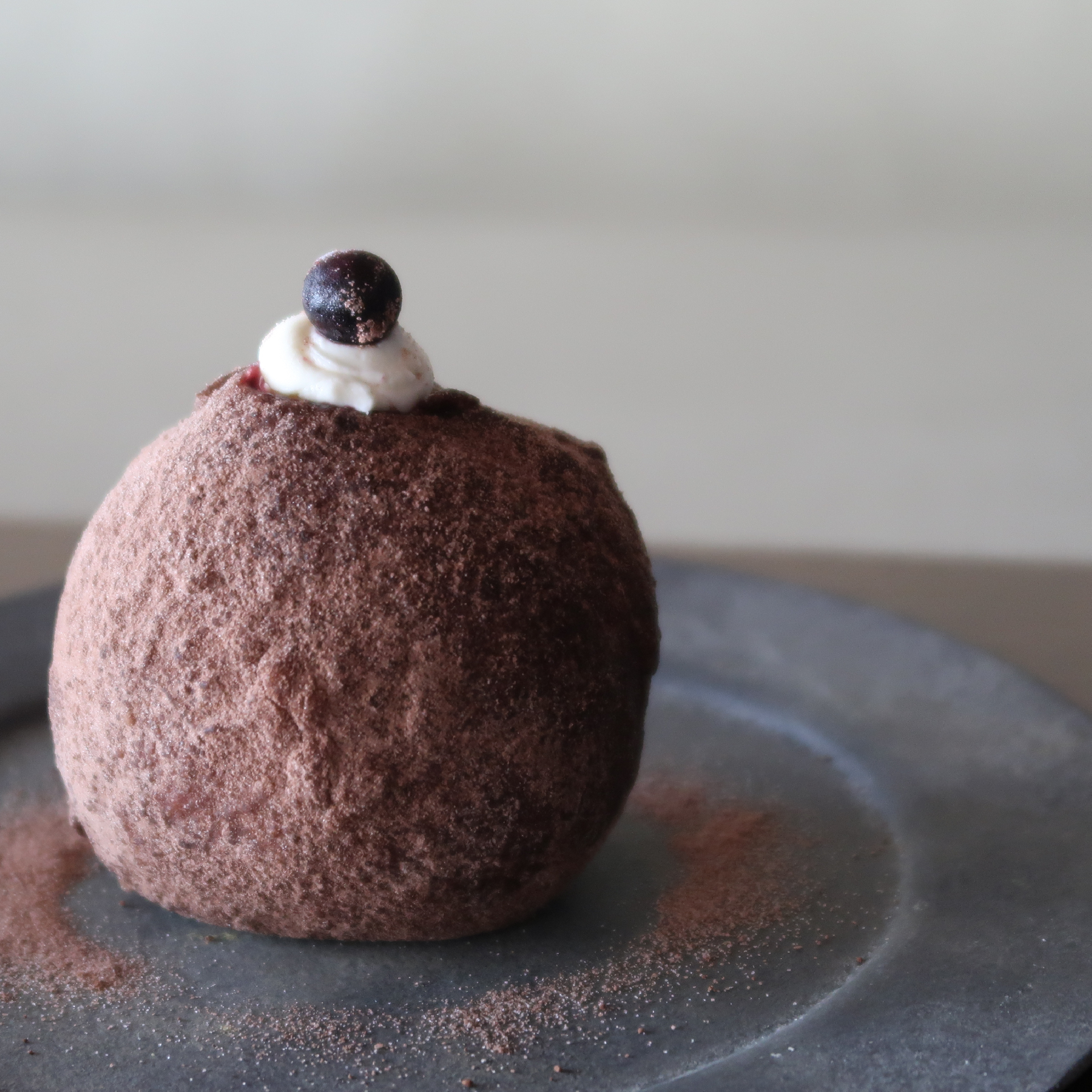 豆乳で仕込んだ生地にココアを加えて 香りよく仕上げた円居のドーナッツ。 自家製ティラミスクリームとカシスソースを中に詰め ココアを纏わせました。 ※クリームは香りつけに洋酒を少量使用しております。 ご購入日当日にお召し上がりください◎ 卵、乳使用。 |