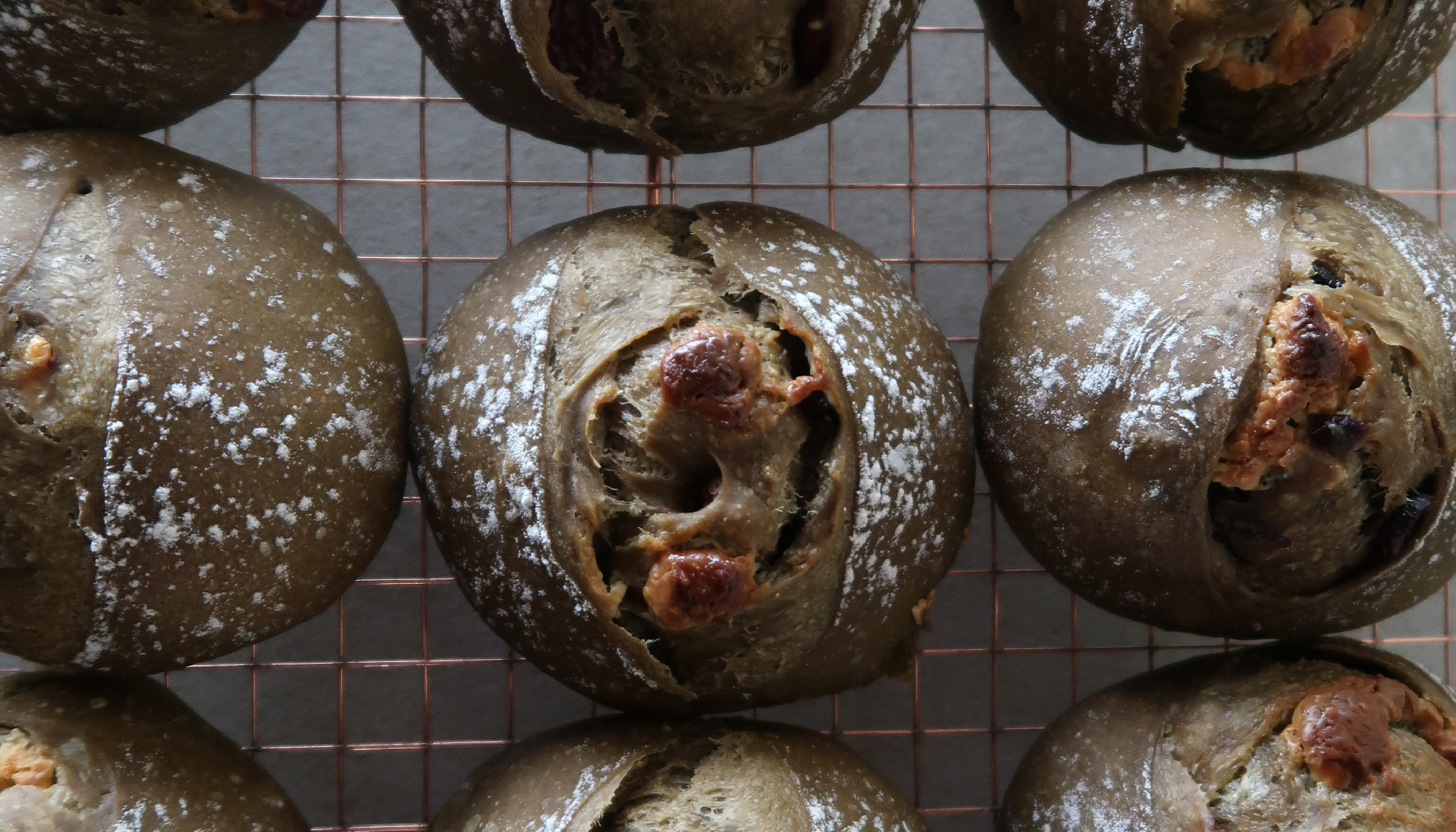 揖斐の傳六茶園さんの天空の古来茶を使用して作るほうじ茶のパン。 中には大粒のクランベリーとホワイトチョコを。 円居スタッフ推しパンの中でも必ず上位に食い込む人気者。 久しぶりの登場です。 |